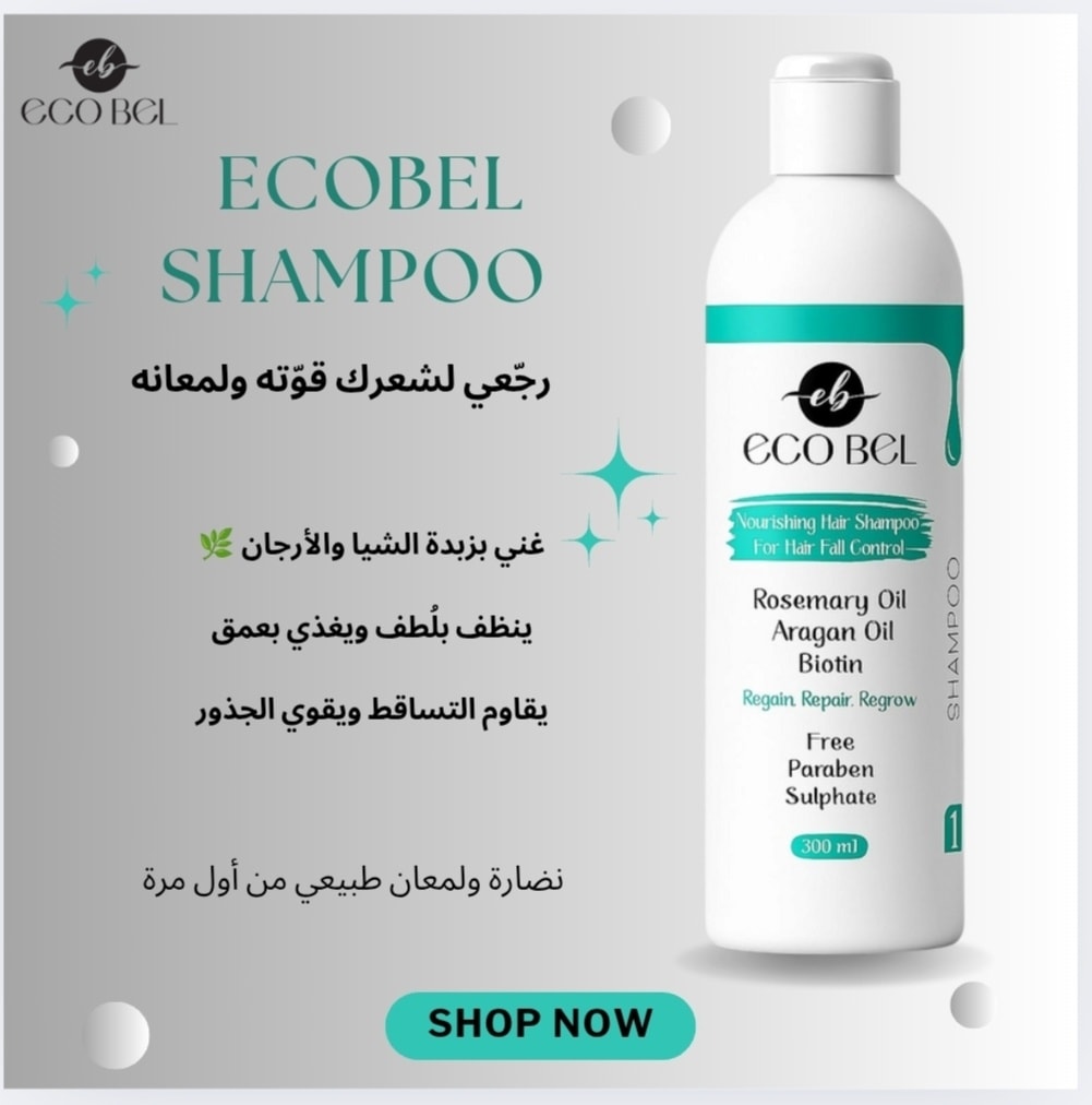 💡 نصيحة: للحصول على أفضل نتيجة للشعر الجاف والتالف، يُفضل استخدام الشامبو مع ماسك الشعر أو السيروم من نفس مجموعة Eco Bell لزيادة الترطيب وتقليل التقصف.