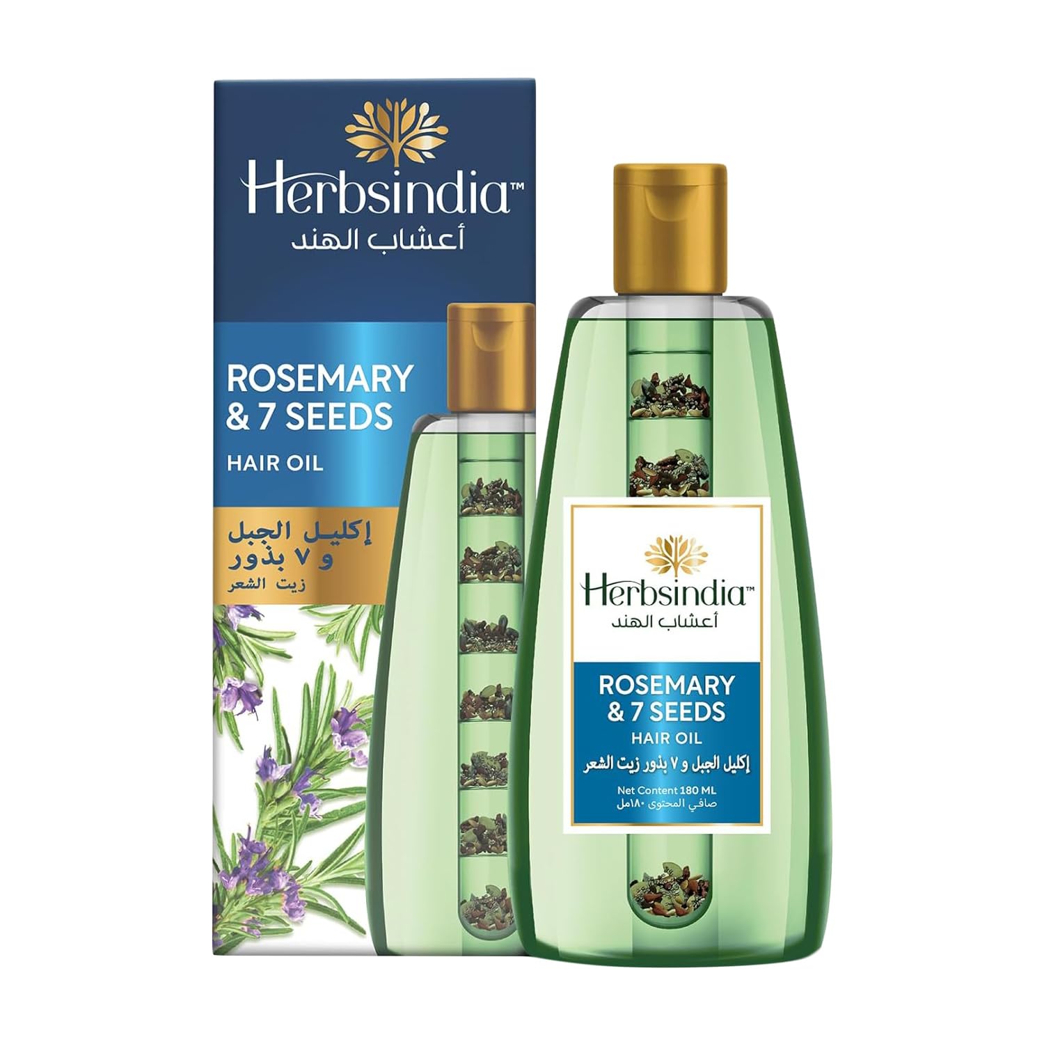 زيت هيربس انديا اكليل الجبل و 7 بذور 280 مل هو زيت غني ومغذٍ مصنوع بعناية من مستخلص إكليل الجبل وزيت طبيعي مخلوط بسبع بذور داخل “أنبوب تغذية” داخل العبوة .