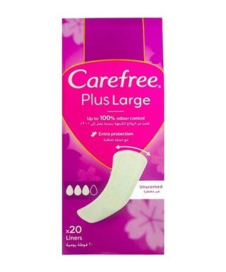 Carefree Plus Large Daily Panty Liners Unscented 20 pcs هي فوط يومية مصممة لتوفير حماية خفيفة وراحة طوال اليوم دون إضافة عطور، مما يجعلها مناسبة للبشرة الحساسة. تتميز بالحجم الكبير لتوفير تغطية أفضل مع تصميم رفيع وناعم يمنح إحساسًا طبيعيًا ومريحًا أثناء الاستخدام اليومي.