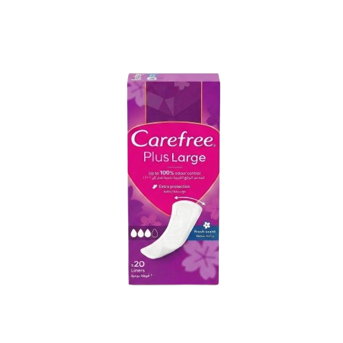 Carefree Plus Large Daily Panty Liners 20 pcs هي فوط يومية توفر حماية خفيفة ضد الرطوبة والروائح مع شعور بالانتعاش طوال اليوم. تصميمها الرفيع والمرن يجعلها مريحة للاستخدام اليومي دون الانزلاق أو التسبب في أي تهيج للبشرة.