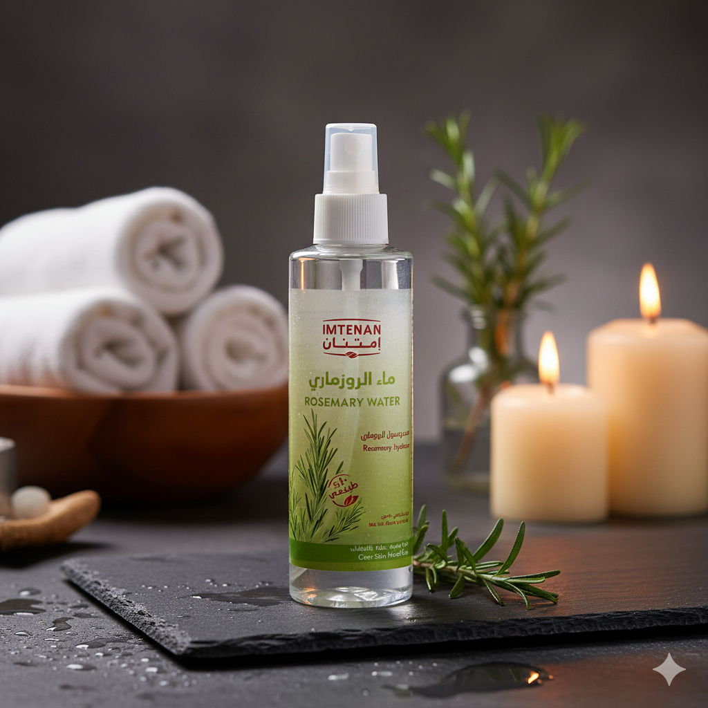 ماء الروزماري (إكليل الجبل) من امتنان هو منشط طبيعي للبشرة مشتق من أعشاب الروزماري المعروف بفوائده العديدة. يُستخدم كـ تونر ومنعش يومي بعد تنظيف البشرة، يساعد على تنقية المسام، تنشيط الدورة الدموية للبشرة، وتقليل لمعان الزيوت الزائدة — مما يمنح بشرتك إحساسًا منعشًا صحيًا طوال اليوم.