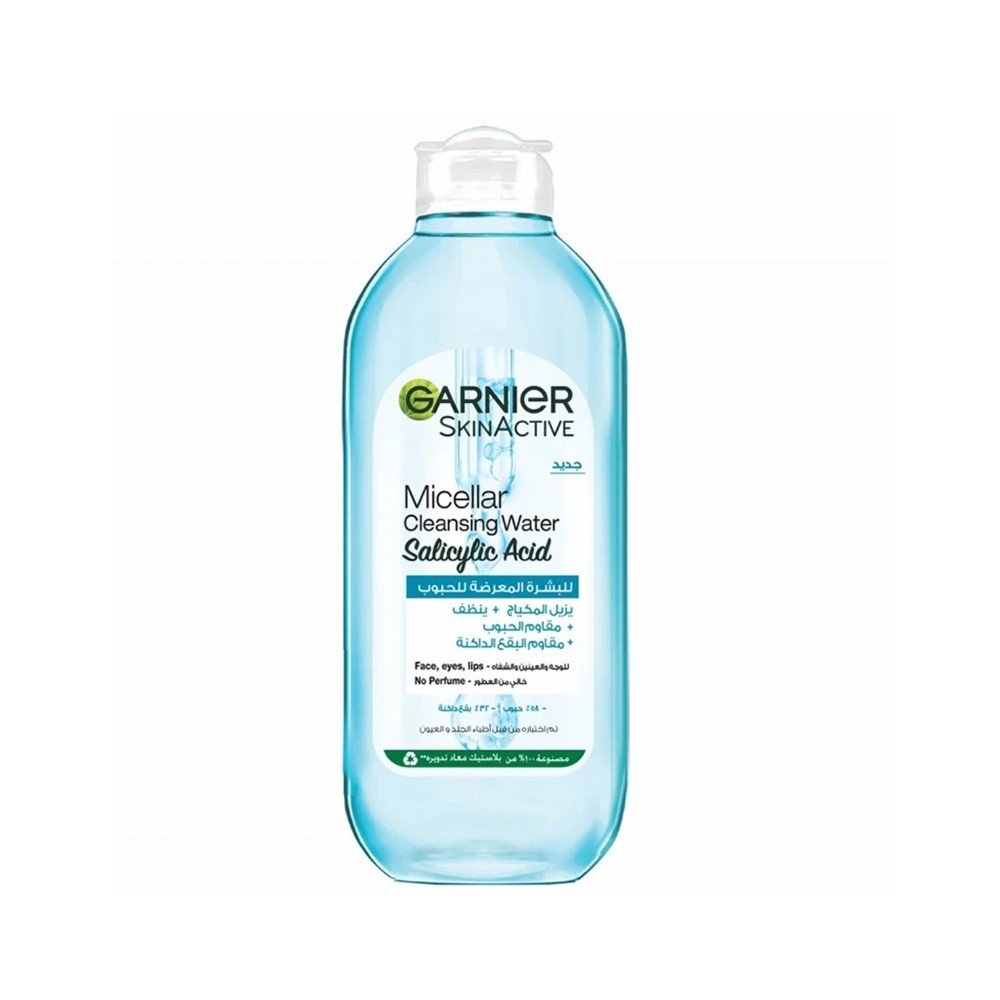جارنيه ماء ميسيلار حمض السالسيك اسيد 400 مل من منتجات العناية بالبشرة التي تنظف الوجه وتزيل المكياج وفي نفس الوقت تساعد في تقليل الحبوب والدهون الزائدة.