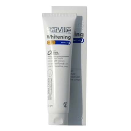 💖 ستارفيل جل تفتيح البشرة ليلي 60 مل (Starville Whitening Night Care Gel 60 gm) هو جل ليلي مخصص للمساعدة على تفتيح البقع الداكنة، توحيد لون البشرة، وتقليل آثار الحبوب والتصبغات مع ترطيب البشرة أثناء الليل. يُستخدم للوجه والجسم، وتذكر بعض المتاجر أنه مناسب أيضًا للمناطق الحساسة وفق تعليمات الاستخدام.