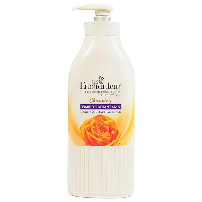 لوشن معطر فاخر من Enchanteur بنسخة Charming (الأصفر)، حجم 500 مل، تركيبة غنية بلمسات عطرية أنثوية تعكس الطابع الزهري المنعش والأنيق. يمزج بين العطر الرقيق والترطيب العميق ليمنح البشرة نعومة ولمعاناً ساتينيًا مع شعور بالانتعاش يدوم.