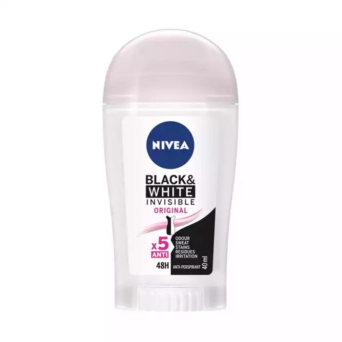 نيفيا ستيك مزيل عرق انفيزبل بلاك اند وايت 40 مل هو مزيل عرق يوفر حماية فعالة من العرق والروائح الكريهه مع تركيبة تمنع ظهور البقع البيضاء على الملابس السوداء